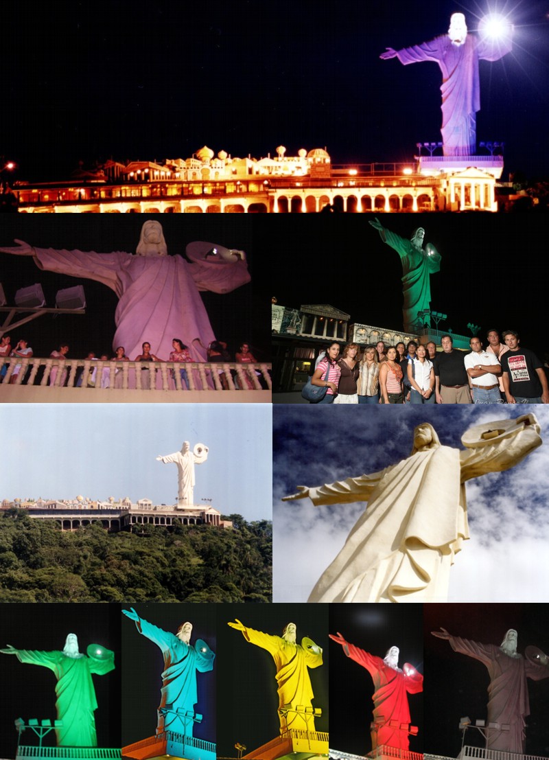y el magno monumento de Jesus Cristo que a la noche cambia de colores propicio para una linda fotografía.
